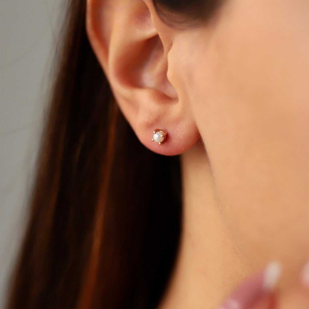 Dört Tırnaklı Vidalı İnci Küpe