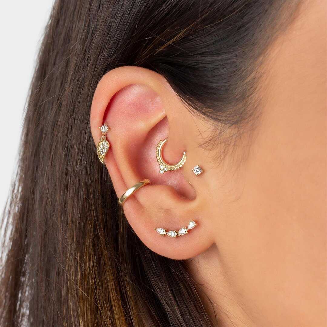 Üç Taşlı Motifli Helix Piercing